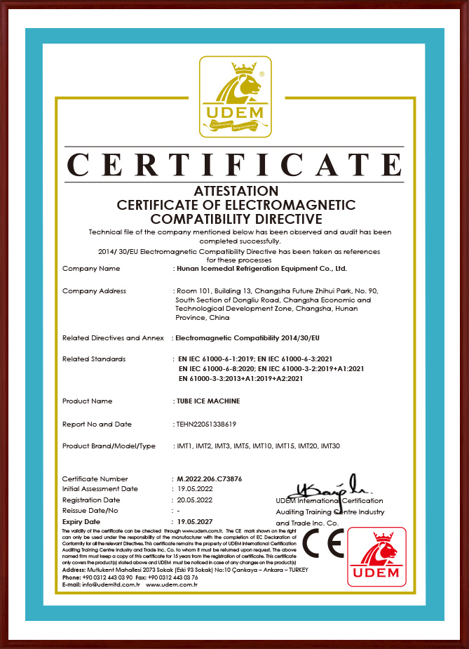 欧盟认证管冰机CE证书 冰砖机_方冰机_片冰机_管冰机_混凝土冷却降温设备_食用冰生产线_制冰机设备源头厂家_上海意昂体育制冷设备有限公司