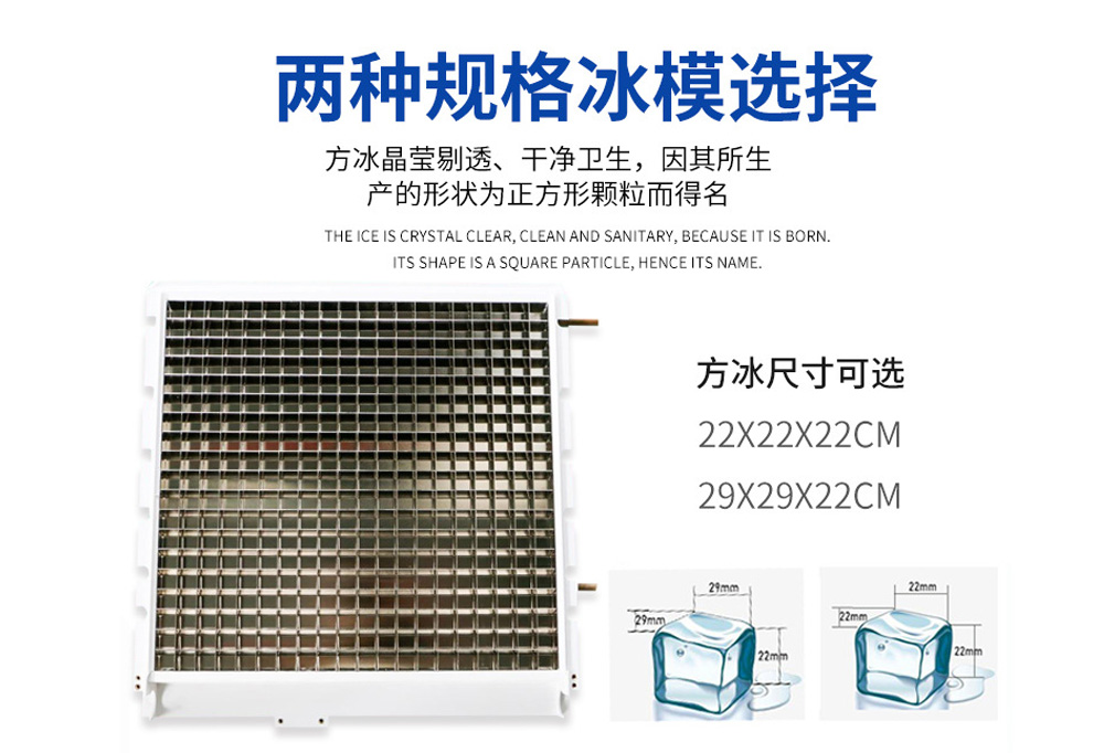 1、方冰机所有与制冰水接触部分材质均是食用级材料;