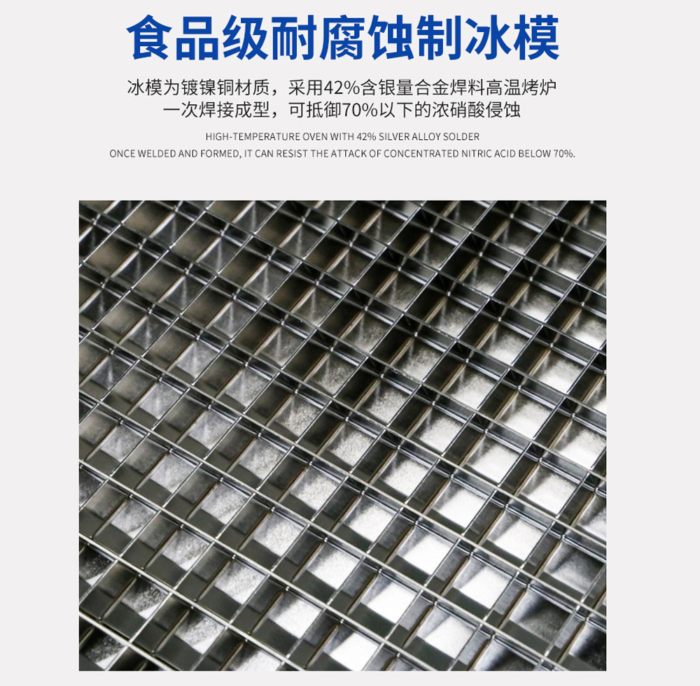2、冰模采用镀镍铜材质,可抵御70%以下的浓硝酸侵蚀;