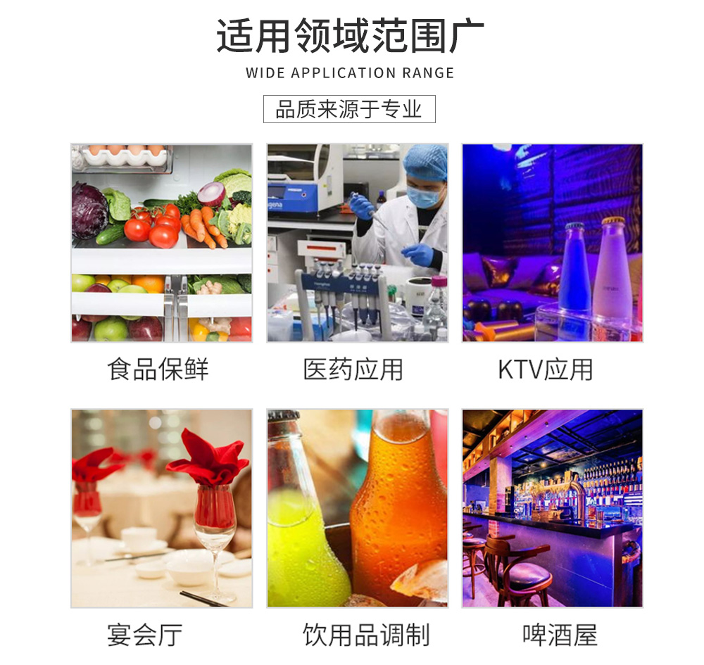 管冰机因其生产冰块形状为不规则长度中空管型而得名。目前管冰是常见的食用冰,冰块晶莹透亮,抗融性好,深得客户的青睐。 不同区域的客户,对食用冰的使用习惯不同,导致有些区域和国家的客户对管冰更加青睐。管冰遍布于: 食物冰藏保鲜、医药应用、KTV、宴会厅、饮用品调制、宾馆、酒店、酒吧、西餐厅、快餐店、冷饮 店、啤酒屋等需要冰块的地方。