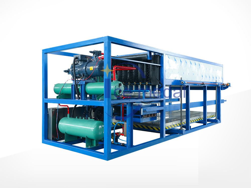 直冷冰砖机是一款冰砖(冰块)生产设备,直冷冰砖机蒸发器采用导热的铝合金材质,与制冷剂直接换热,冻结温度低, 制冰速度快,且冰块融化速度慢。直冷冰砖机自动化程度高,自动制冰、自动补水、自动脱冰,全自动化,无需人工操作。直冷冰砖机冰块干净卫生,可达到食用标准。直冷冰砖机冰模长期使用无需更换,产品模块化设计,操作简单,占地面积小,安装方便,现场接水接电即可制冰。